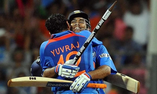 Yuvraj Singh and MS Dhoni celebrate their victory in the 2011 World Cup final between India and Sri Lanka in Mumbai. Photograph: Prakash Singh/AFP/Getty Images