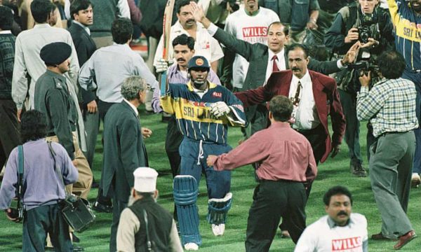 Sri Lanka qualify for the quarter-finals before a game is played, when Australia and West Indies refused to travel there citing security concerns, thus handing the co-hosts a pair of walkovers – and go on to win the entire tournament, becoming the first team to win a World Cup final batting second. That the beaten finalists were Australia, one of the reluctant travellers, only added to Sri Lanka’s satisfaction. They reach that stage in unusual circumstances, awarded victory over India by the match referee after frustrated home fans in Calcutta force the players off the field under a shower of bottles and assorted debris.