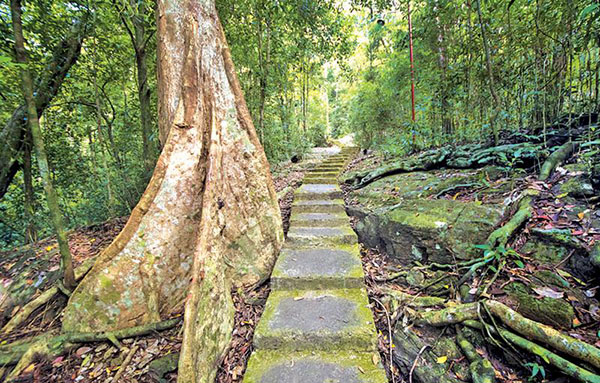 It also directs you to the Dombaskanda forest hermitage. The forest hermitage of Dombagaskanda was founded by Ven. Olaboduwe Sri Revatha Dammakirthi Thera in 1955. Today, the hermitage has several constructions including Kutis, meditative walkways and medical halls linked together and developed as a reputed forest hermitage in the country with 15 resident monastic bhikkhus. The bhikkhus at the hermitage do not like to be disturbed and eco-tourists should not continue beyond the flight of steps which lead to the kutis (abode) to the hermitage without prior permission.
