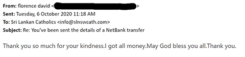 Your response to the appeal was overwhelmingly heart-warming and in a short period of 1-week we have managed to raise a total sum of AUD 5305.00 of which was transferred to Rajitha’s wife, Florence’s bank account.