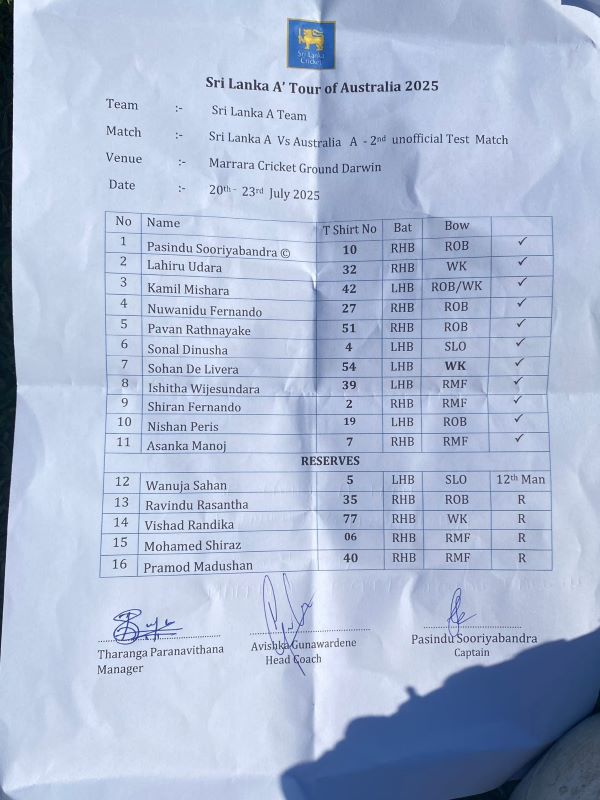 Australia A vs Sri Lanka A – Second four-day match in Darwin