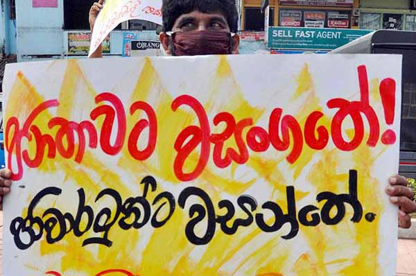 Frontline Socialist Party (FSP) staged a protest in Maharagama claiming that people are burdened with the cost of living and therefore, the protesters urge the authorities to provide relief to people. Pix Nisal Baduge