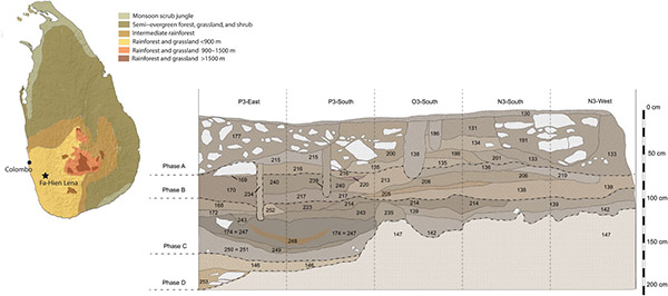 Location and stratigraphy of Fa-Hien Lena, Sri Lanka.