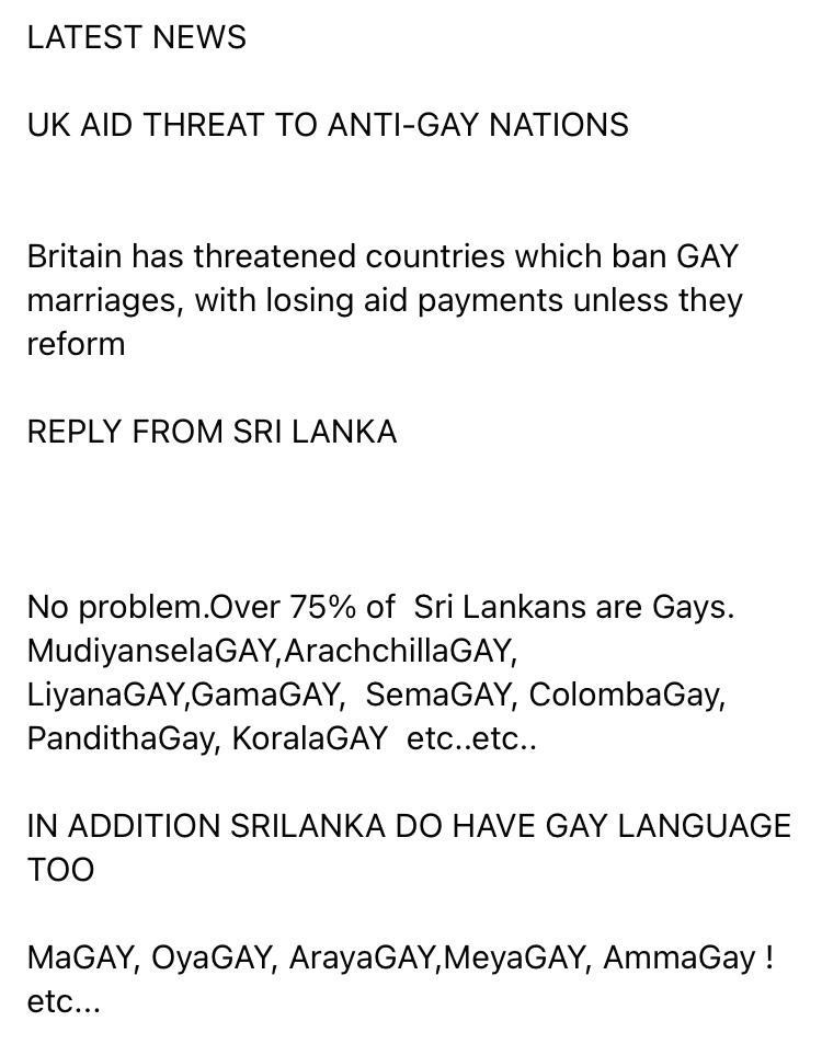 This comes to me via Harry de Sayrah & Keith Bennett, who must be commended for trying to get our minds off all the unfortunate happenings in Sri Lanka at the moment.