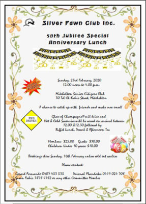 A very Silver Fawn Christmas Celebration Carols, Dinner And Dancing – Saturday December 3, 2022 – 6.00PM To 11.00PM