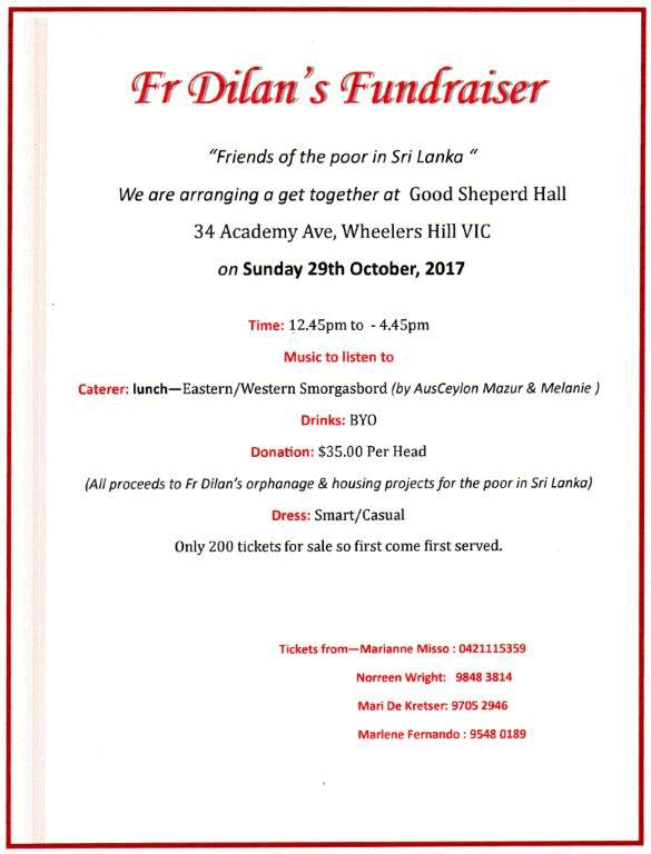 Fr Dilan’s Fundraiser Last updated: August 14, 2017 11:15 am By admin Share 0 Min Read SHARE Fr Dilan’s Fundraiser Share This Article Email Copy Link Print Previous Article Meet & Greet Frank Ifield Next Article Miss South Asia – Australia Pageant FacebookLikeYoutubeSubscribeLinkedInFollow Most Read “A PICTURE SPEAKS A 1000 WORDS” – By Des Kelly “TREES OF SRI LANKA” – By Des Kelly A Life Hack for when we’re Burnt Out & Broken Down – By Uma Panch Narration of the History of our Proud Ancestral (Orang Jawa) Heritage. by Noor R. Rahim eLanka Marriage Proposals Noel News Noel News- By Noel Whittaker EILEEN MARY SIBELLE DE SILVA (nee DISSANAYAKE) – 29 September 1922 – 6 April 2018 – A Woman of Value an Appreciation written by Mohini Gunasekera K.K.S. Cement Factory Dr.Harold Gunatillake’s 90th Birthday party - Advertisement -