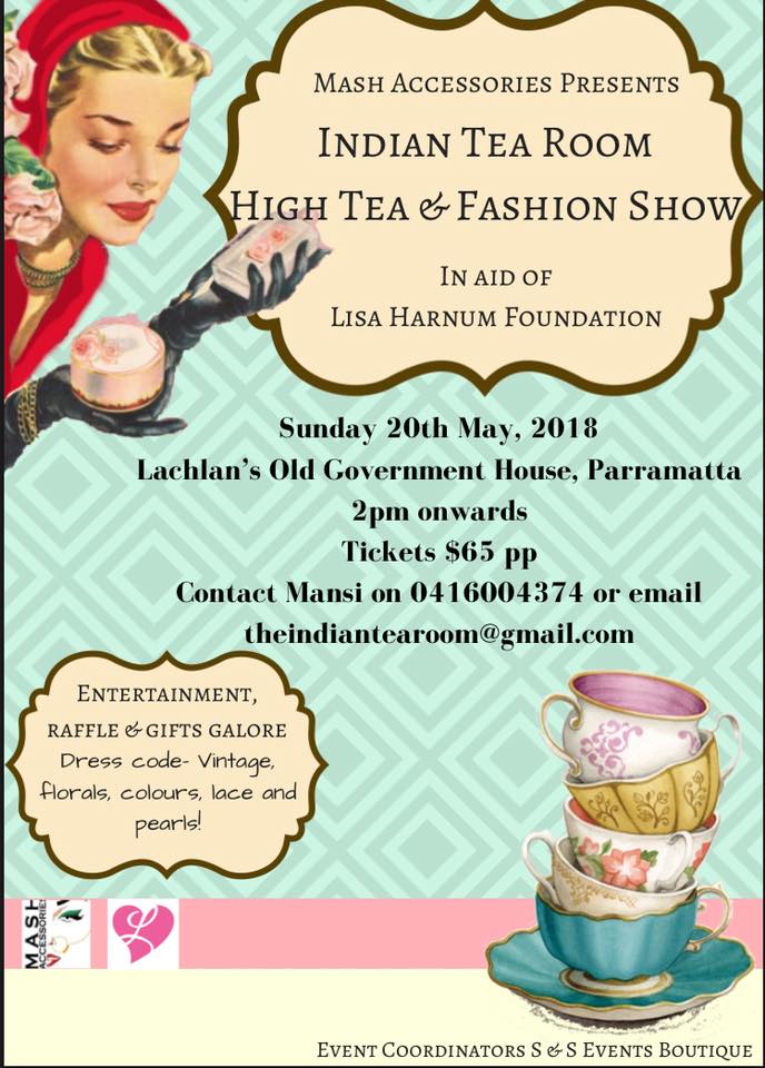 Mash Accessories Presents – Indian Tea Room – High Tea & Fashion Show (Sunday 20th May 2018) – Sydney Event