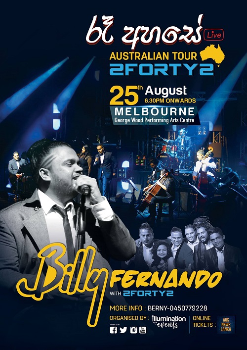MUSIC CONCERT, “Ra ahase” Last updated: July 2, 2018 6:42 am By eLanka adminByeLanka admin Share 0 Min Read SHARE MUSIC CONCERT, “Ra ahase” on Friday, august 25, 2018, from 6.30pm on wards at George Wood Performing Arts Centre. For further information , contact: Berny 045-0779228. Share This Article Email Copy Link Print Previous Article Old josephians’ club of australia inc. presents “blue” and white ball” 35th annual dinner dance Next Article MUSIC CONCERT, “Ridma Rathri” with New Zealand Artists Leave a Comment Leave a ReplyYou must be logged in to post a comment. FacebookLikeYoutubeSubscribeLinkedInFollow Most Read “A PICTURE SPEAKS A 1000 WORDS” – By Des Kelly “TREES OF SRI LANKA” – By Des Kelly A Life Hack for when we’re Burnt Out & Broken Down – By Uma Panch Narration of the History of our Proud Ancestral (Orang Jawa) Heritage. by Noor R. Rahim eLanka Marriage Proposals Noel News Noel News- By Noel Whittaker EILEEN MARY SIBELLE DE SILVA (nee DISSANAYAKE) – 29 September 1922 – 6 April 2018 – A Woman of Value an Appreciation written by Mohini Gunasekera K.K.S. Cement Factory Dr.Harold Gunatillake’s 90th Birthday party - Advertisement -