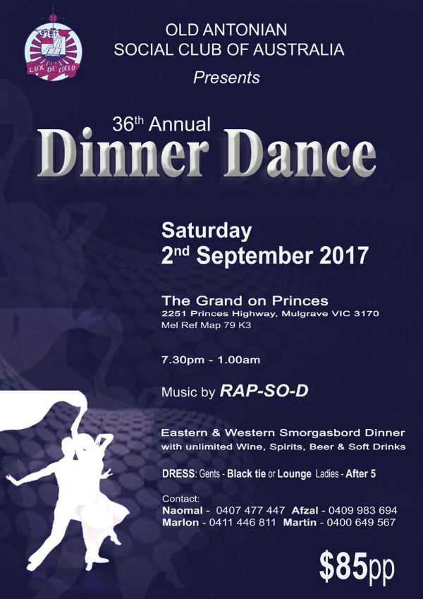 Old Antonian Social Club of Australia Presents 36th Annual Dinner Dance Last updated: July 12, 2017 7:05 pm By admin Share 0 Min Read SHARE Old Antonian Social Club of Australia Presents 36th Annual Dinner Dance Share This Article Email Copy Link Print Previous Article Sri Lankan Fundraiser Curry for a Cause Next Article Request to feature award-winning LIFE GIVING STORIES 2017: Five storytellers from diverse backgrounds on the ultimate gift of life FacebookLikeYoutubeSubscribeLinkedInFollow Most Read “A PICTURE SPEAKS A 1000 WORDS” – By Des Kelly “TREES OF SRI LANKA” – By Des Kelly A Life Hack for when we’re Burnt Out & Broken Down – By Uma Panch Narration of the History of our Proud Ancestral (Orang Jawa) Heritage. by Noor R. Rahim eLanka Marriage Proposals Noel News Noel News- By Noel Whittaker EILEEN MARY SIBELLE DE SILVA (nee DISSANAYAKE) – 29 September 1922 – 6 April 2018 – A Woman of Value an Appreciation written by Mohini Gunasekera K.K.S. Cement Factory Dr.Harold Gunatillake’s 90th Birthday party - Advertisement -