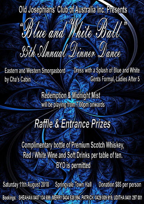 Old josephians’ club of australia inc. presents “blue” and white ball” 35th annual dinner dance