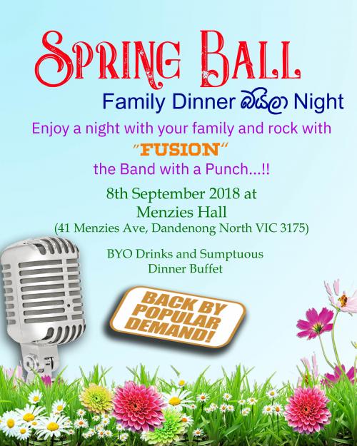 SPRING BALL Last updated: August 29, 2018 8:40 am By eLanka adminByeLanka admin Share 0 Min Read SHARE SPRING BALL 8th September 2018 at Menzies Hall More Read Existential Crisis, Mindfulness and the Middle Path to Social Action by Asoka Bandarage – 17th September at 6.30pm Hello From The Other Side – 4th October 2025 – 6.00PM (Perth Event) Hello From The Other Side – 5th October 2025 – 3.00PM ( Sydney Event ) AVIJIT SARKAR’S NATRAJ ACADEMY PRESENTS – A celebration of the musical genius of Salil Chowdhury – Friday September 19, 2025; Time: 7pm – 10 pm ( Sydney Event) 41 Menzies Ave, Dandenong North VIC 3175 Share This Article Email Copy Link Print Previous Article Colombo Night’18 Next Article Catalina Country Club, Koggala, Sri Lanka: Information Morning – Sydney Leave a Comment Leave a ReplyYou must be logged in to post a comment. FacebookLikeYoutubeSubscribeLinkedInFollow Most Read “A PICTURE SPEAKS A 1000 WORDS” – By Des Kelly “TREES OF SRI LANKA” – By Des Kelly A Life Hack for when we’re Burnt Out & Broken Down – By Uma Panch Narration of the History of our Proud Ancestral (Orang Jawa) Heritage. by Noor R. Rahim eLanka Marriage Proposals Noel News Noel News- By Noel Whittaker EILEEN MARY SIBELLE DE SILVA (nee DISSANAYAKE) – 29 September 1922 – 6 April 2018 – A Woman of Value an Appreciation written by Mohini Gunasekera K.K.S. Cement Factory Dr.Harold Gunatillake’s 90th Birthday party - Advertisement -