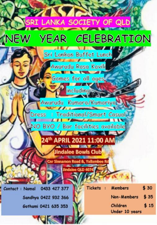 Sri Lanka Society of QLD New Year Celebration(Brisbane event) Last updated: April 5, 2021 5:07 pm By eLanka adminByeLanka admin Share 0 Min Read SHARE Sri Lanka Society of QLD New Year Celebration(Brisbane event) 24th April 2021 11.00 AM @Cnr Sinnamon Road & Yallambee rd, Jindalee QLD 4074 Share This Article Email Copy Link Print Previous Article Sri Lankan New Year Celebration 2021(Brisbane event) Next Article Silver fawn club family camp Lake Perseverance(Brisbane event) FacebookLikeYoutubeSubscribeLinkedInFollow Most Read “A PICTURE SPEAKS A 1000 WORDS” – By Des Kelly “TREES OF SRI LANKA” – By Des Kelly A Life Hack for when we’re Burnt Out & Broken Down – By Uma Panch Narration of the History of our Proud Ancestral (Orang Jawa) Heritage. by Noor R. Rahim eLanka Marriage Proposals Noel News Noel News- By Noel Whittaker EILEEN MARY SIBELLE DE SILVA (nee DISSANAYAKE) – 29 September 1922 – 6 April 2018 – A Woman of Value an Appreciation written by Mohini Gunasekera K.K.S. Cement Factory Dr.Harold Gunatillake’s 90th Birthday party - Advertisement -