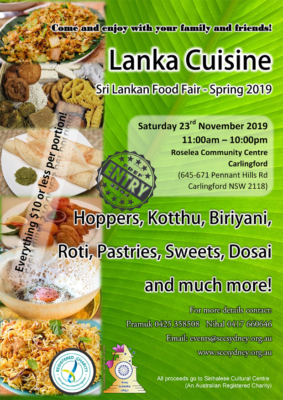 Sri Lankan Food Fair – 22nd July 2023 -12 Noon To 6 PM ( Sydney Event )