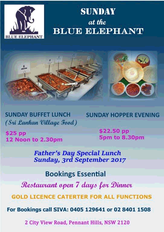 Sunday at the Blue Elephant Fathers Day Special Lunch Last updated: August 5, 2017 6:00 am By admin Share 0 Min Read SHARE Sunday at the Blue Elephant Fathers Day Special Lunch Share This Article Email Copy Link Print Previous Article Celebrate the Feast of Our Lady of Vailankanni Mother of Good Health Next Article Schoenstatt Annual Dinner Dance 2017 FacebookLikeYoutubeSubscribeLinkedInFollow Most Read “A PICTURE SPEAKS A 1000 WORDS” – By Des Kelly “TREES OF SRI LANKA” – By Des Kelly A Life Hack for when we’re Burnt Out & Broken Down – By Uma Panch Narration of the History of our Proud Ancestral (Orang Jawa) Heritage. by Noor R. Rahim eLanka Marriage Proposals Noel News Noel News- By Noel Whittaker EILEEN MARY SIBELLE DE SILVA (nee DISSANAYAKE) – 29 September 1922 – 6 April 2018 – A Woman of Value an Appreciation written by Mohini Gunasekera K.K.S. Cement Factory Dr.Harold Gunatillake’s 90th Birthday party - Advertisement -