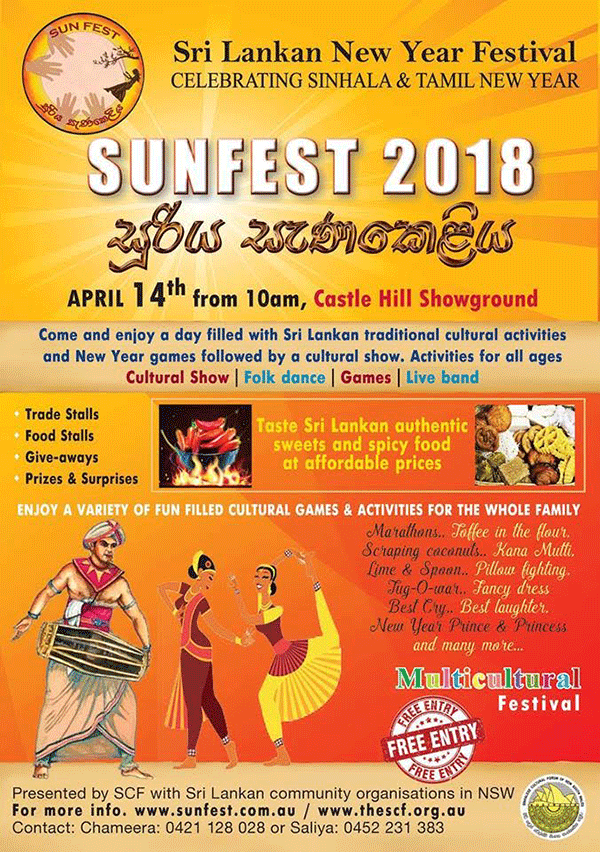 This Saturday, the 14th April 2018, Sinhalese Cultural Forum of NSW supported by Sri Lankan Sydney Consulate and other Sri Lankan associations will organise the largest outdoor festival of the year celebrating the Sinhalese and Tamil New Year!