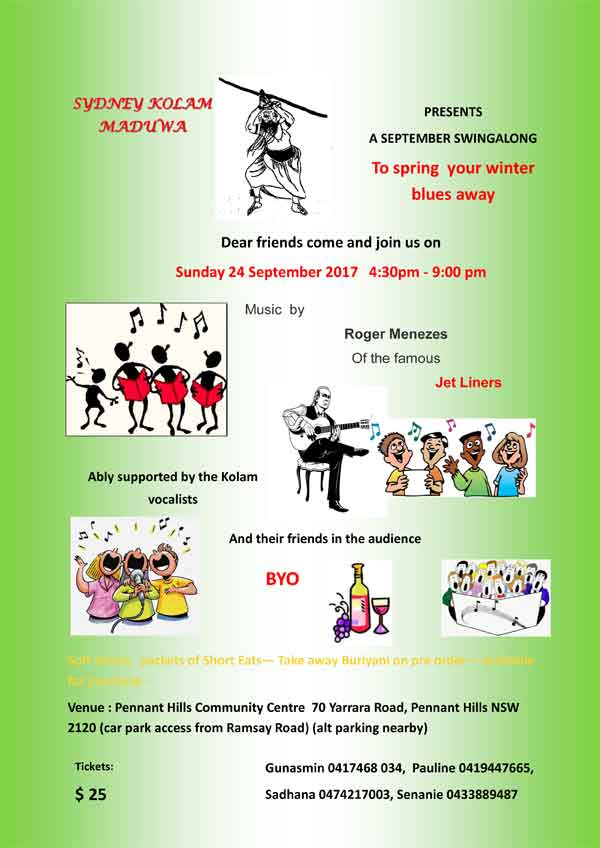 Sydney Kolam Maduwa Last updated: July 4, 2017 3:48 pm By admin Share 0 Min Read SHARE Sydney Kolam Maduwa Share This Article Email Copy Link Print Previous Article DECC POP-UP ART STUDIO Next Article STC OBA Sydney Presents Hundred Shades of Blues FacebookLikeYoutubeSubscribeLinkedInFollow Most Read “A PICTURE SPEAKS A 1000 WORDS” – By Des Kelly “TREES OF SRI LANKA” – By Des Kelly A Life Hack for when we’re Burnt Out & Broken Down – By Uma Panch Narration of the History of our Proud Ancestral (Orang Jawa) Heritage. by Noor R. Rahim eLanka Marriage Proposals Noel News Noel News- By Noel Whittaker EILEEN MARY SIBELLE DE SILVA (nee DISSANAYAKE) – 29 September 1922 – 6 April 2018 – A Woman of Value an Appreciation written by Mohini Gunasekera K.K.S. Cement Factory Dr.Harold Gunatillake’s 90th Birthday party - Advertisement -