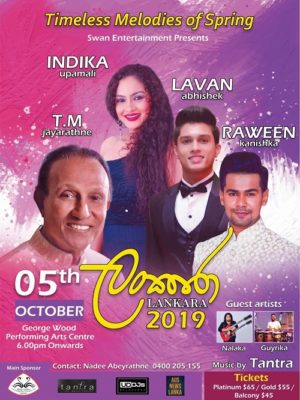 Timeless Melodies of Spring Swan Entertainment Presents Lankara 2019 Last updated: September 22, 2019 5:42 am By eLanka adminByeLanka admin Share 0 Min Read SHARE Timeless Melodies of Spring Swan Entertainment Presents Lankara 2019 05 th October @George wood Performing Arts Centre More Read MUSIC CONCERT, “Lankara 2019”, ‘Timeless Melodies of Spring 6.00 pm Onwords Share This Article Email Copy Link Print Previous Article Ceylon Society of Australia AGM, Dinner & Social Next Article The Ex Royal Airforforce Club Inc Melbournce Presents Spring With the Eagles Leave a Comment Leave a ReplyYou must be logged in to post a comment. FacebookLikeYoutubeSubscribeLinkedInFollow Most Read “A PICTURE SPEAKS A 1000 WORDS” – By Des Kelly “TREES OF SRI LANKA” – By Des Kelly A Life Hack for when we’re Burnt Out & Broken Down – By Uma Panch Narration of the History of our Proud Ancestral (Orang Jawa) Heritage. by Noor R. Rahim eLanka Marriage Proposals Noel News Noel News- By Noel Whittaker EILEEN MARY SIBELLE DE SILVA (nee DISSANAYAKE) – 29 September 1922 – 6 April 2018 – A Woman of Value an Appreciation written by Mohini Gunasekera K.K.S. Cement Factory Dr.Harold Gunatillake’s 90th Birthday party - Advertisement -