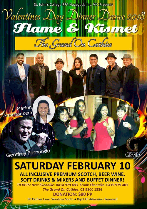 Valantines Day Dinner Dance 2018 Last updated: January 28, 2018 1:30 pm By admin Share 0 Min Read SHARE Valantines Day Dinner Dance 2018 Share This Article Email Copy Link Print Previous Article Happy Valantine’s Day Next Article Ran Roo Leave a Comment Leave a ReplyYou must be logged in to post a comment. FacebookLikeYoutubeSubscribeLinkedInFollow Most Read “A PICTURE SPEAKS A 1000 WORDS” – By Des Kelly “TREES OF SRI LANKA” – By Des Kelly A Life Hack for when we’re Burnt Out & Broken Down – By Uma Panch Narration of the History of our Proud Ancestral (Orang Jawa) Heritage. by Noor R. Rahim eLanka Marriage Proposals Noel News Noel News- By Noel Whittaker EILEEN MARY SIBELLE DE SILVA (nee DISSANAYAKE) – 29 September 1922 – 6 April 2018 – A Woman of Value an Appreciation written by Mohini Gunasekera K.K.S. Cement Factory Dr.Harold Gunatillake’s 90th Birthday party - Advertisement -