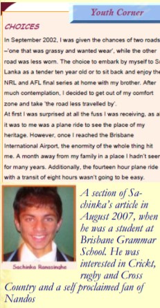 I am now 28 and in the midst of busy surgical training in Urology, having worked in multiple different hospitals in Queensland Health. With chaotic nature of work, exams and general life, I have a little time for reflection (unfortunately).But I do remember the carefree days when my siblings (Chanaka and Yehanka) and I used to go to Sinhala school at Yungaba every 2nd Friday night. As a young Australian with Sri Lankan heri tage, it was at times difficult to completely understand where you fit in and how you identify yourself (it still can be). In day-today school, you were considered Sri Lankan, but then when you went to Sri Lanka on holidays you were considered an Australian. Meeting others going through the same conundrum was helpful. The Sinhala school days definitely reinforced the importance of being proud in our Sri Lankan heritage, something I still am today. I think the olderyou get, the more you realise that you can take the best qualities and values from being Australian and Sri Lankan, becoming an amalgamation of both. I think that’s the best advice I have for young “Aussie Lankans’ going through the same experience. In 2022 I sit my final fellowship exam in Urology, before becoming a fully qualified surgeon.