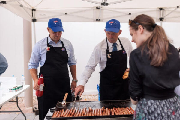 Both Mayor Mannoun and Mr Abbot then got behind the barbeque and served free sausages to those who attended the citizenship and award ceremony in the morning.