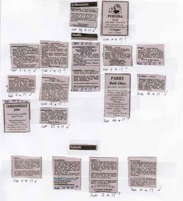 Articles Obituaries – APRIL 2017 Last updated: May 1, 2017 5:44 pm By admin Share 0 Min Read SHARE Obituaries – APRIL 2017 TAGGED:Obituaries - APRIL 2017 Share This Article Email Copy Link Print Previous Article Top 50 Most Streamed Songs Of All Time on Spotify (2017) Next Article Sri Lankan OBITUARIES – Compiled by Victor Melder FacebookLikeYoutubeSubscribeLinkedInFollow Most Read “A PICTURE SPEAKS A 1000 WORDS” – By Des Kelly “TREES OF SRI LANKA” – By Des Kelly A Life Hack for when we’re Burnt Out & Broken Down – By Uma Panch Narration of the History of our Proud Ancestral (Orang Jawa) Heritage. by Noor R. Rahim eLanka Marriage Proposals Noel News Noel News- By Noel Whittaker EILEEN MARY SIBELLE DE SILVA (nee DISSANAYAKE) – 29 September 1922 – 6 April 2018 – A Woman of Value an Appreciation written by Mohini Gunasekera K.K.S. Cement Factory Dr.Harold Gunatillake’s 90th Birthday party - Advertisement -