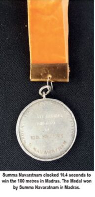 In 1953 Summa participated in the Madras Provincial Olympic Games. He returned a timing of 10.4 seconds, which was the fastest timing, recorded on a grass track in Asia and was dubbed as the ‘fastest man in Asia’. In this event he beat the Indian National Champion Ivan Jacobs, who was the favorite for the event. Yours truly was an undergraduate at the University of Ceylon, Peradeniya and when we read this in the newspapers at that time, we jumped up in joy. However there were some critiques in the athletic circles; they mentioned that you cannot depend on individual timekeepers, even though this was the official and accepted method of recording at that time even in most of the International Athletic Meets. (Auto timing was used only from the 1952 Olympics.) This was an amazing record and feat for an athlete from Ceylon.