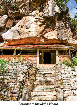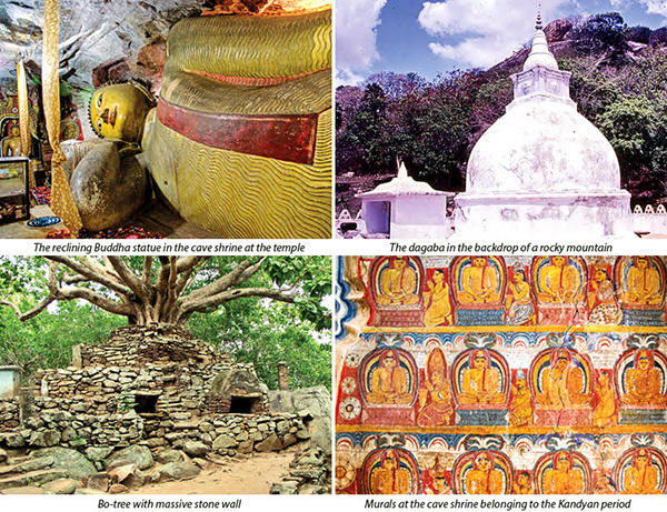 Legend has it that Budu Res (Rays of light) emanated from the Buddha statue when the Bo-tree was planted. The centuries old huge Bo-tree at the site shades the front of the shrine cave. A 10-feet tall stone wall with four platforms is around the Bo-tree. This is rare feature in Sri Lanka’s temples.