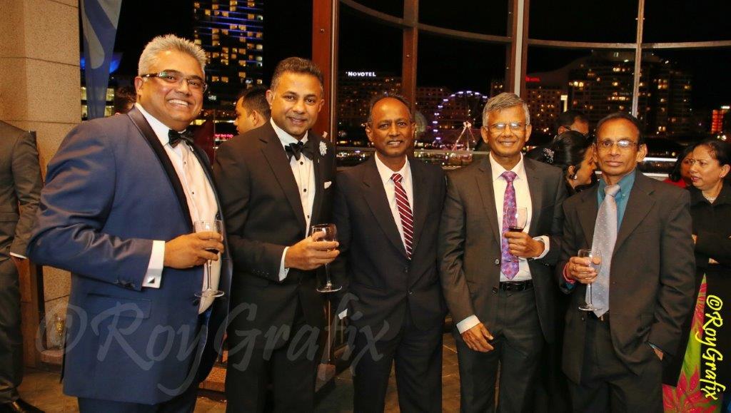 The program for the evening started at 7:00 PM and canapés and drinks were served out in the balcony facing the glittering lights of the harbour. Once inside the hall the guests were greeted to a lively Kandyan dance by a female and male dancer which is a cultural feature of Sri Lanka to bring good blessings to the evening. The compere was Duke Ramachandran who performed a superb job by keeping everyone entertained with his witty remarks and soon got people actively engaged in dancing to the lively beat of “Mystery” from Melbourne.