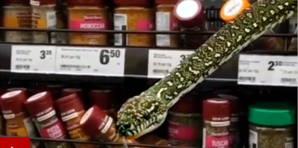 A grocery run turned into a snake rescue for an Australian woman when she was greeted by a python poking out from a supermarket shelf.