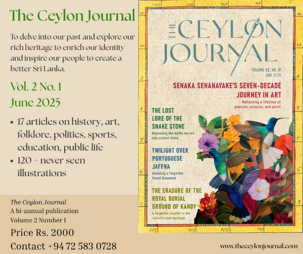 We are thrilled to announce the release of the much-anticipated third issue of The Ceylon Journal! This latest volume is a breathtaking journey through the soul of Sri Lanka, featuring 17 captivating articles that span the realms of history, art, folklore, politics, law, sports, education, natural history, and more.