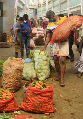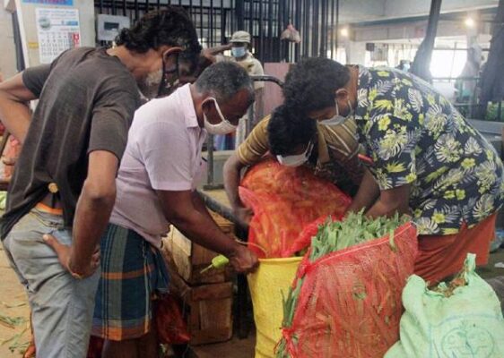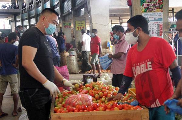 People were seen buying vegetables and fruits at the Peliyagoda Economic Center and Economic Center in Piliyandala under strict guidelines. Pix by Pradeep Dilrukshana and Damith Wickramasinghe