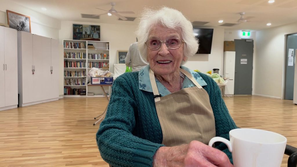 Centenarian says the volunteer work at her local church is a highlight of her week. (ABC News)