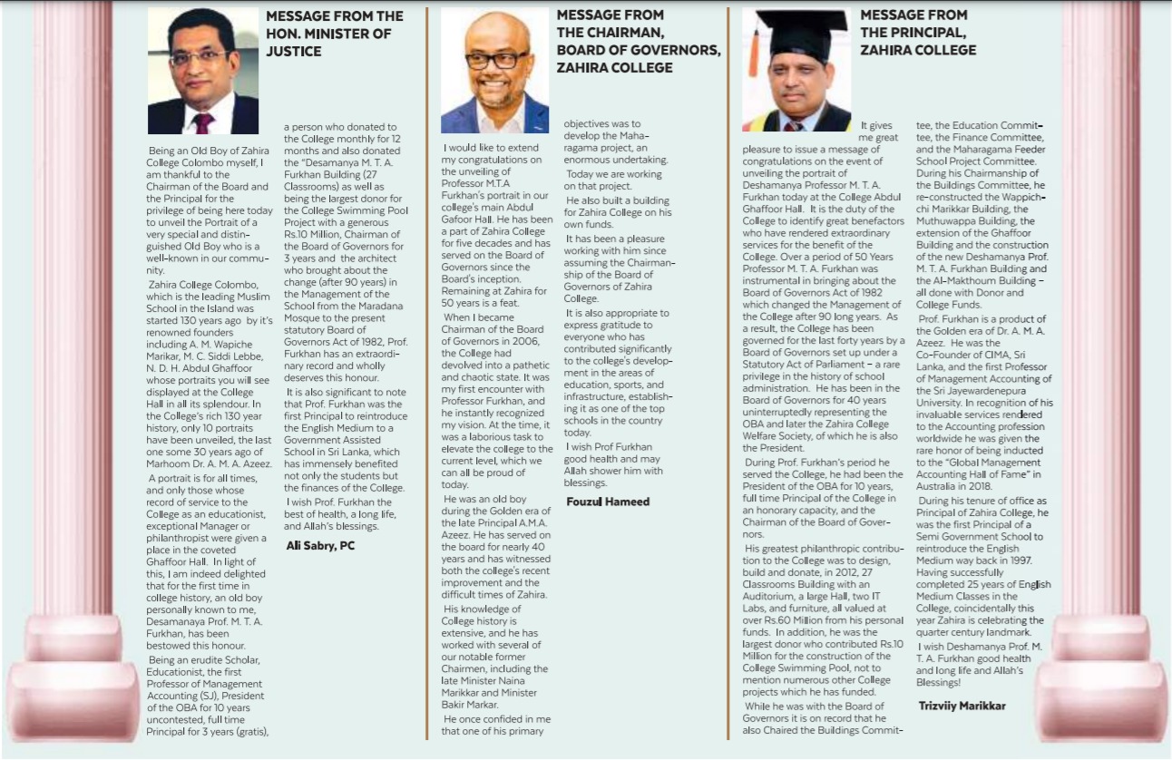 Zahira College Colombo unveils The Portrait of AL – HAJ DESAMANYA – Professor M.T.A FURKHAN